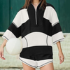 Package Includes: 1 * Women’s Striped Half Zip Tops & Shorts Two-Piece Set