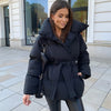 Women's Stylish Solid Lace-Up Quilted Jacket