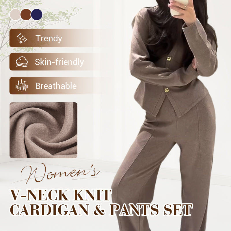 Women's V-Neck Knit Cardigan & Pants Set